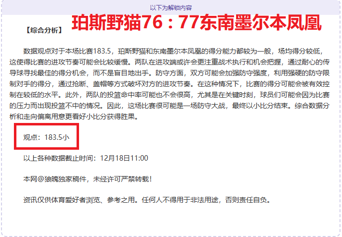解锁内容包括:综合大数据分析+分解赛事走向+比赛建议+作者观点数据