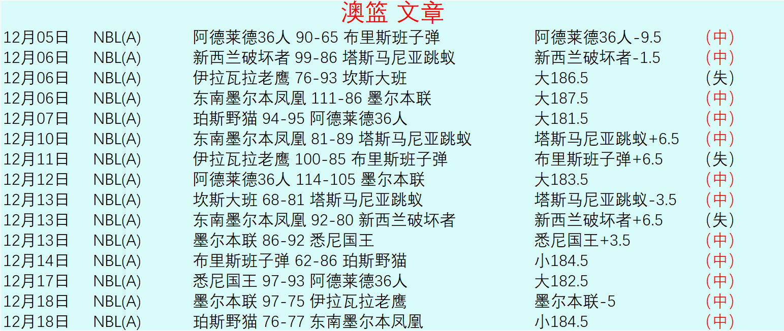 儒墨心语:做好做足功课,认真分析每一场赛事,争取更好的回馈大家的期待,加油。近期文章,西篮甲3中3,澳篮15中12,韩篮甲2中2,CBA3中3,足球7中5,