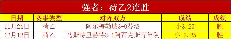 近一次荷乙12号拿下胜利,荷乙取得2连胜发挥。11月胜+16,10月胜+16,过去两个月合计胜+32,月成绩非常精彩