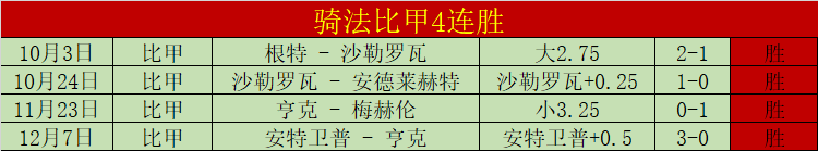 比甲10月至今拿下4连胜,9月27也拿了一场胜利,整体5连胜发挥。11月14日至今,近35胜25天胜+31,胜+非常精彩独占鳌头