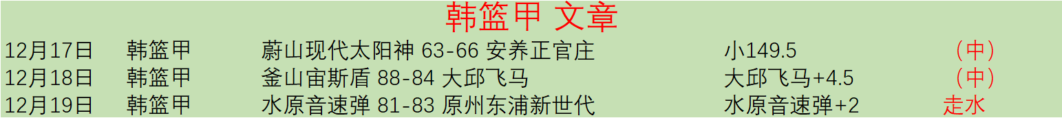 儒墨心语:做好做足功课,认真分析每一场赛事,争取更好的回馈大家的期待,加油。近期文章,西篮甲3中3,澳篮16中12,韩篮甲2中2,CBA4中3,Euro5中3,足球8中6,