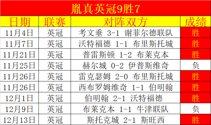 英冠9胜7,英冠分析值得期待。11月胜+13,10月胜+12,月发挥非常出色