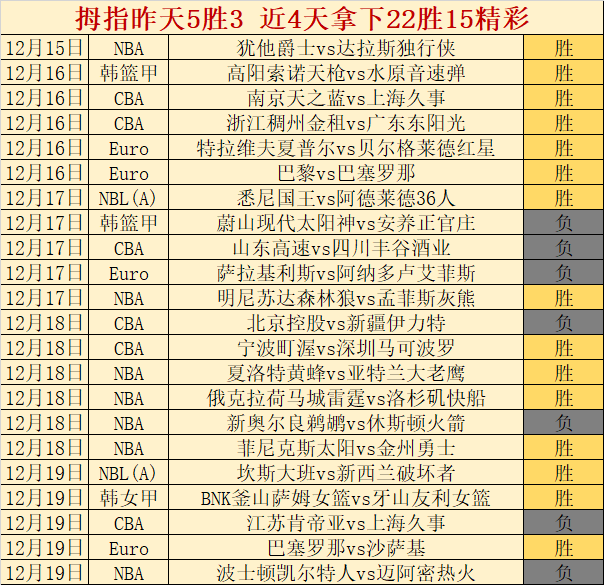 昨天5胜3,4天拿下22胜15精彩,14天胜10天合计胜+15,处于疯狂取胜时刻