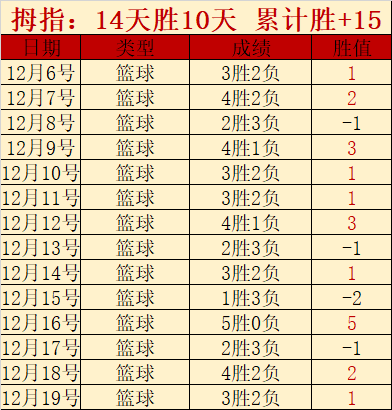 NBA整体24胜18,NBA的出色程度是王牌级别的。昨天5胜3,4天拿下22胜15精彩,14天胜10天合计胜+15,处于疯狂取胜时刻