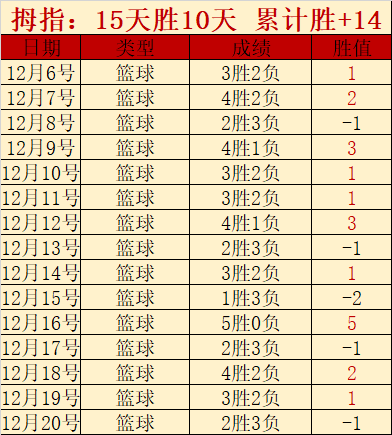 15天胜10天合计胜+14,胜利占据大比例的优势,状态很好