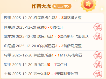 成绩回顾:近7中5!塞尔超近5胜率100%!火热状态继续,成绩维持在稳定水平上,今天继续分享五场信心比赛给大伙,希望大家持续关注作者大虎。