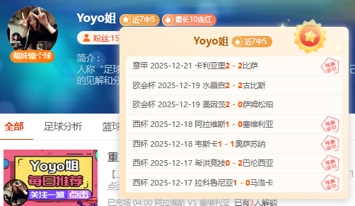 1.每天48球币即可得到Yoyo姐一场精选建议。