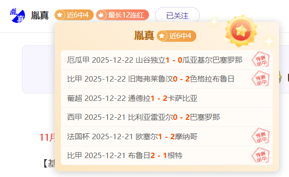 最近更新:2025-12-22 12:35 近6中4最长12连红