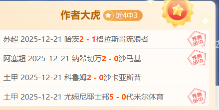 成绩回顾:近4中3!塞尔超近6胜率100%!火热状态继续,这几天成绩维持在稳定水平上,今天继续分享五场信心比赛给大伙,希望大家持续关注作者大虎。