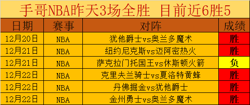NBA昨天3场全胜,目前近6胜5,精彩的惊人。昨天5胜4,发挥出色