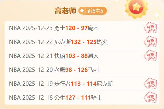 【赛事回顾】上期分享的NBA赛事勇士对阵魔术,结果勇士方向成功打出。高老师近期取得6胜5的战绩,状态火热,本期继续聚焦一场。