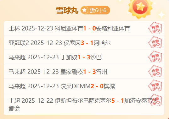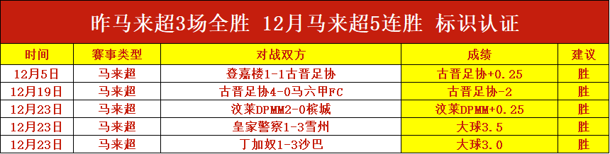 昨天5场全胜,马来超3场全胜轻松打出,12月马来超精挑细选了5场赛事,斩获5连胜记录,赛事方面近6连胜!今天赛事依旧选择强项系列,持续稳,别错过了!笔者近期前进脚步表现仍然优秀,本日赛程继续出击,争取在稳健的基础上进一步突破!
