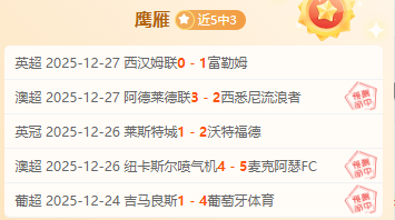 成绩回顾:昨日继续拿下一场澳超赛事。感谢一直以来的支持与陪伴,今天看好不错的赛事,强项赛事很有信心,鹰雁也曾创下19连胜的超高记录。愿大家在观赛的同时,也能收获满满的喜悦与惊喜,觉得还行的不妨继续关注,一起开启精彩的足球之旅。