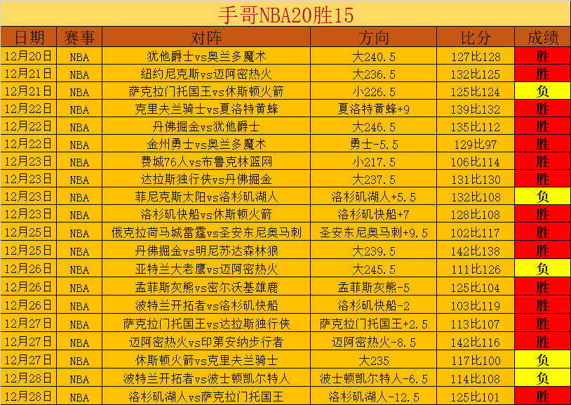 NBA近20胜15,非常出色的NBA精彩发挥。昨天继续胜利,连胜4天胜+10,7天胜6天胜+14,表现非常精彩