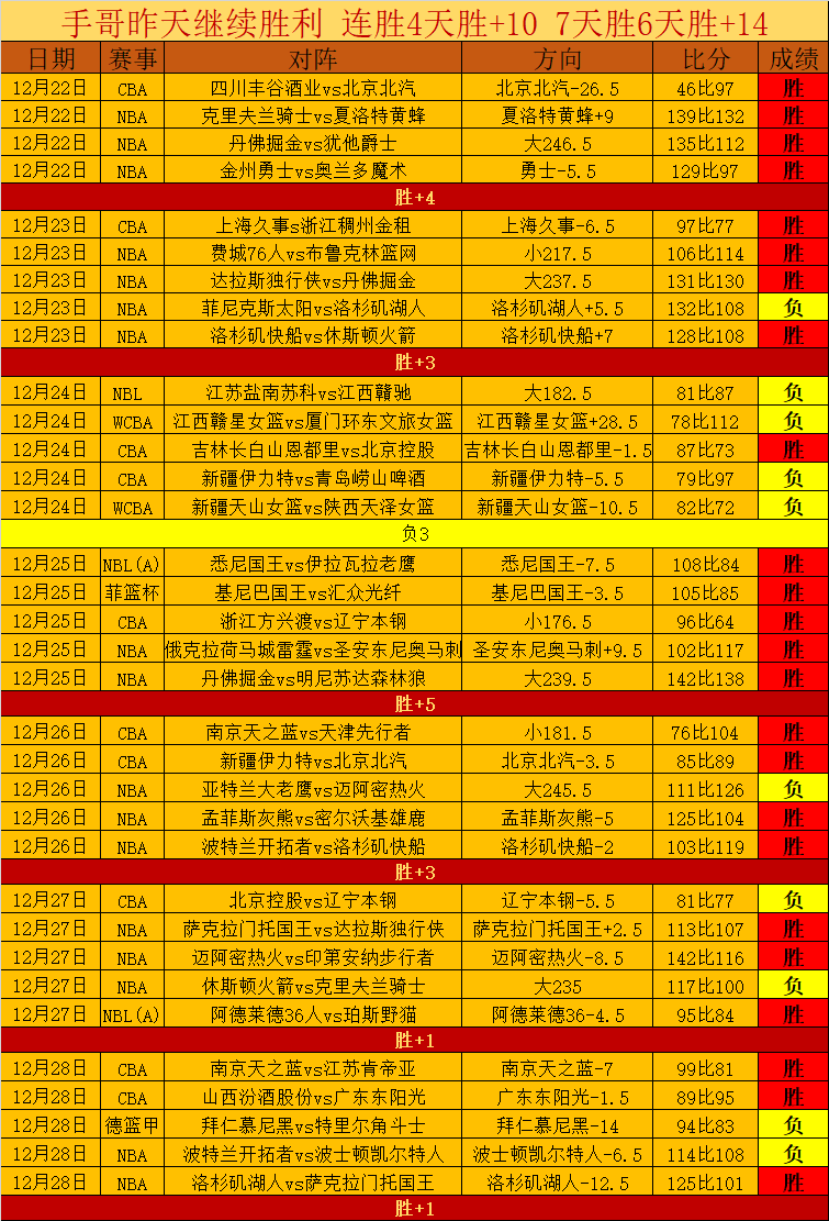 NBA近20胜15,非常出色的NBA精彩发挥。昨天继续胜利,连胜4天胜+10,7天胜6天胜+14,表现非常精彩