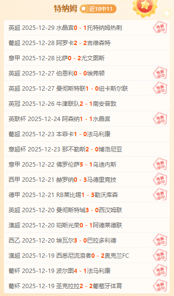 【战绩回顾】目前成绩18胜11,英超近10场胜率80%。特纳姆将凭借多年深耕足球领域的专业视角,结合独家赛事分析方法,深度解析赛果走向。诚邀各位球迷朋友共同交流探讨,让我们携手冲击高效战绩!