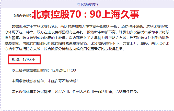 解锁内容包括:综合大数据分析+分解赛事走向+比赛建议+作者观点数据