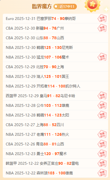 【成绩回顾】昨天3场赛事取得双胜,近期成绩17胜11,整体相对稳定。今日针对韩篮甲以及NBA赛事进行临界值数据深研。
