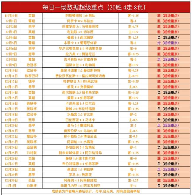 战绩回顾:昨日【总进球数超级重点】非洲杯苏丹大方向走了,【总进球数超级重点】依然近4胜3!【数据超级重点】非洲杯赤道几内亚方向没有打出,【数据超级重点】近28胜20,成绩出色!解锁文章1战,非洲杯喀麦隆方向走了,文章4连胜被终结了!鸡锅不追求场次多,追求少而精准,绝不滥竽充数,必须把老铁们的每一份信任都转化为胜利!