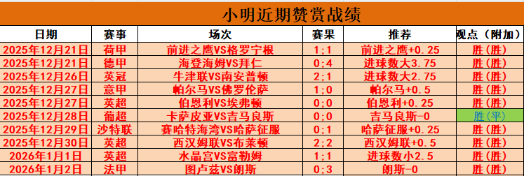 【上期回顾】状态稳定,昨整体4对3,文章3对2,澳超大打出,意甲主任正确数据平,近6对5;赞赏朗斯拿下,赞赏10连对!昨精选持平,意甲6连对,赞赏再拿下,赞赏十全十美!今比赛不错,加油冲。