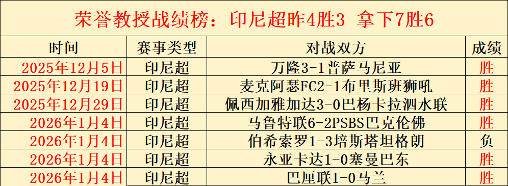 昨天5胜4打出,印尼超4胜3,拿下7胜6,状态火热!最高打下14连胜的表现已见证实力。各线赛事都能保证清晰的解读思路与靠谱的选择方向!截至昨天荣誉教授已经有4485场解读经验,今天继续精选5场,多元化的赛事系列,以更高连胜胜利率绩迎接5000场记录来临,关注荣誉教授,成为荣誉教授的好伙伴!