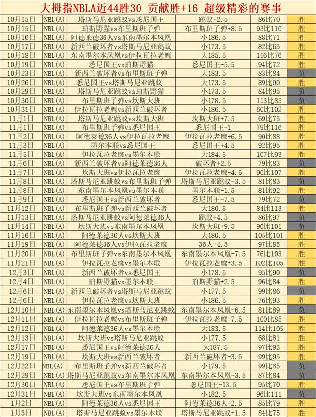 NBLA近44场胜30场,贡献胜+16,长期精彩的赛事。近30天胜17天合计胜+14,非常惊人的胜+表现