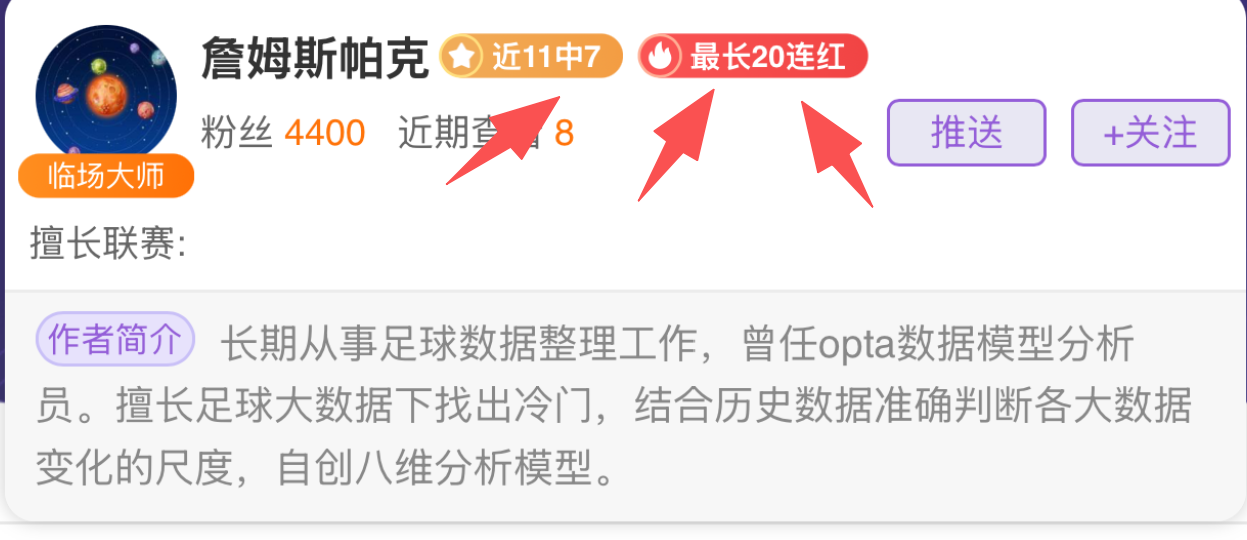 从足球赛场的数据采集员,到领先独一份的「单场精算师」,詹姆斯·帕克用15年磨出了不跟风的底气。拒绝一天多观点的“模糊预测”,坚持每日只锁定一场赛事,靠「英伦三维数据模型」拆解澳超、日系、五大联赛的赛事密码:曾经拿下过20连红,世界杯10连红、欧洲杯11连红的辉煌战绩,跟着詹姆斯,不用在一堆预测里挑花眼,一场就够抓赛果。
