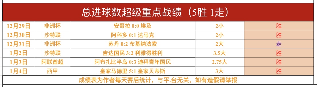 战绩回顾:昨日总计6胜5,成绩很出色!【数据超级重点】1场意甲佛罗伦萨稳稳胜利,【数据超级重点】近32胜22,成绩出色!【总进球数超级重点】1场西甲皇马大方向完美全胜,【总进球数超级重点】强势5连胜!解锁文章5胜4,英超纽卡斯尔联、切尔西完胜,法甲大巴黎没有打出!私推总进球数1场澳超阿德莱德联完美全胜,私推总进球数3连胜!鸡锅不追求场次多,追求少而精准,绝不滥竽充数,必须把老铁们的每一份信任都转化为胜利!