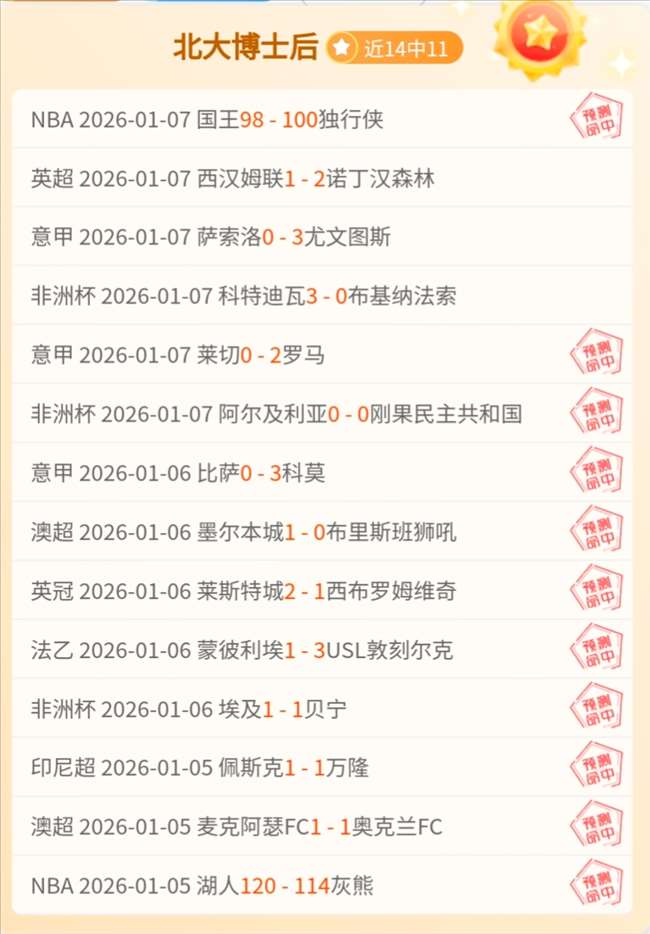 【昨日回顾】精选文章近两天14中11状态火热;昨日:澳超墨尔本城双飞双红√;意甲科莫大√;五星非洲杯√;皇牌森林×;意甲萨索洛×;非洲杯科特迪瓦×;五星罗马√;NBA国王√;每天真实,再接再厉!