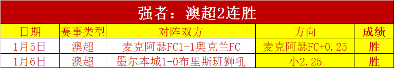 澳超在本周2场分析拿下全胜,澳超发挥出色。上周六拿下7胜5,周末赛事发挥更精彩。过去三个月(10月、11月和12月)保持正向胜+月成绩,三个月胜+33,月成绩非常精彩