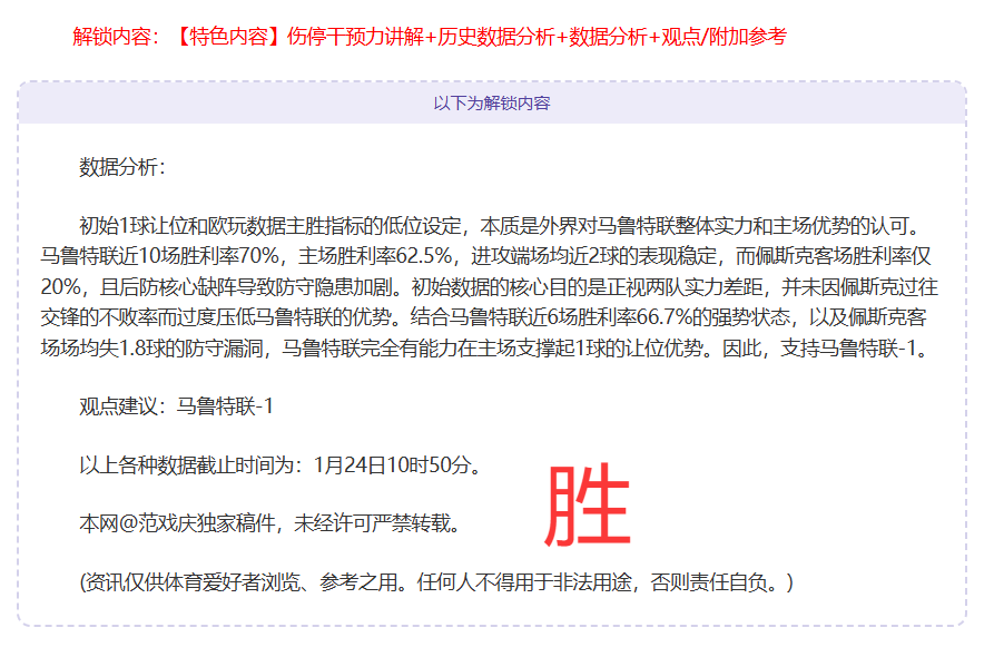 解锁内容:【特色内容】伤停干预力讲解+历史数据分析+数据分析+观点/附加参考