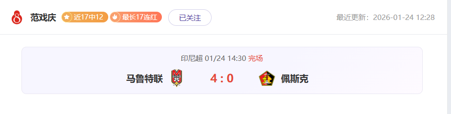 印尼超昨天胜利,今天的印尼超当然有信心延续胜利。3天拿下17胜12胜+7,8天胜6天精合计胜+10,当前状态非常优质。11月胜+33,10月10-31日合计胜+23,胜+数值突出,胜利一直占据绝对优势