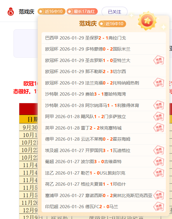 最近更新:2026-01-29 14:39 近16中10最长17连红