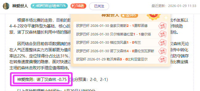 【作者前言:一名深耕足球篮球赛事领域的文字创作者,独创“数据+战术+心理”三维分析法,为粉丝提供独家前瞻内容。昨晚重点欧罗巴杯表现4中4,当前保持五连胜状态出列,接下来希望各位继续关注,福利多多!】