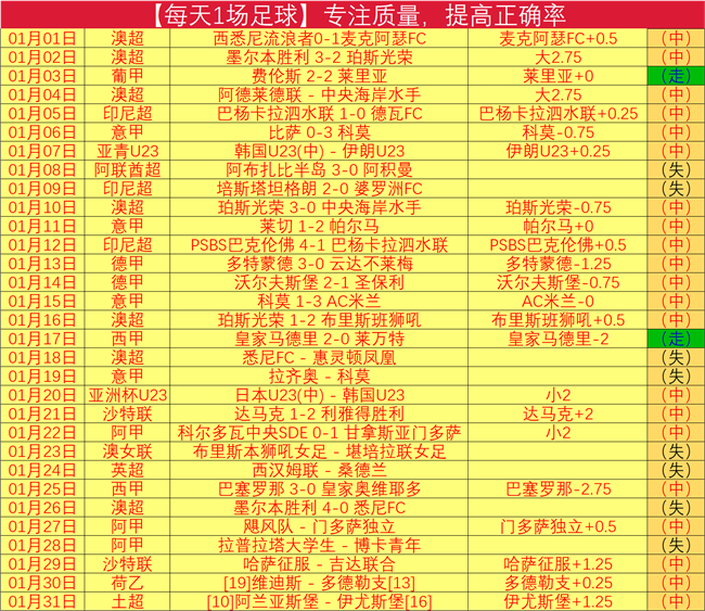 【每天1场足球】专注质量,提高正确率。每天只写1场足球,抓重点,适合长期定投参考。