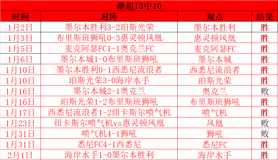 昨天的成绩一般般,但今天有我熟悉的澳超比赛,澳超13中10!今晚继续,做精做好,一起加油!