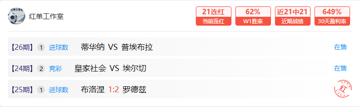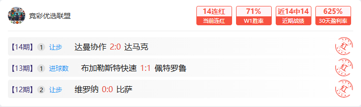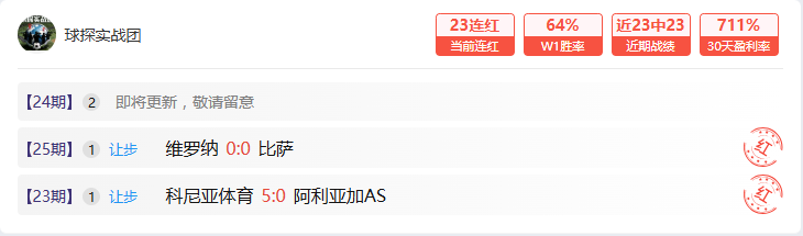 【 计划单 】板块的一众团队也是弹无虚发,一路高歌猛进,其中“球探实战团、竞彩优选联盟、红单工作室”的连胜期数令人叹为观止,状态简直犹如破竹之势,而新晋的“冷热象限”也是一鸣惊人、3场法国杯连战连捷,用胜率来告诉大家,抱团专家更专业,值得信赖!