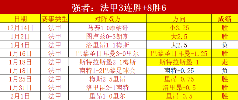 法甲3连胜+8胜6,出色的五大联赛表现。昨天胜利发挥,上周末两天都是胜利发挥,连续3天周末取得胜利,周末发挥更出色