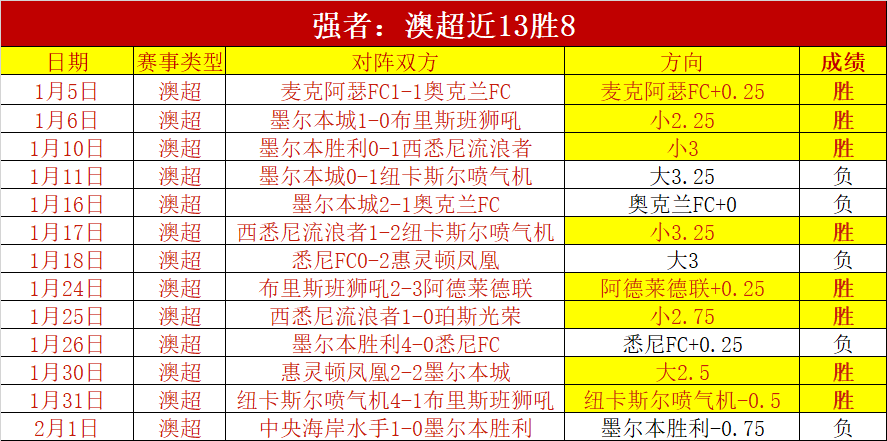 澳超13胜8,亚澳早场一直是强项赛事。昨天胜利发挥,上周末两天都是胜利发挥,连续3天周末取得胜利,周末发挥更出色