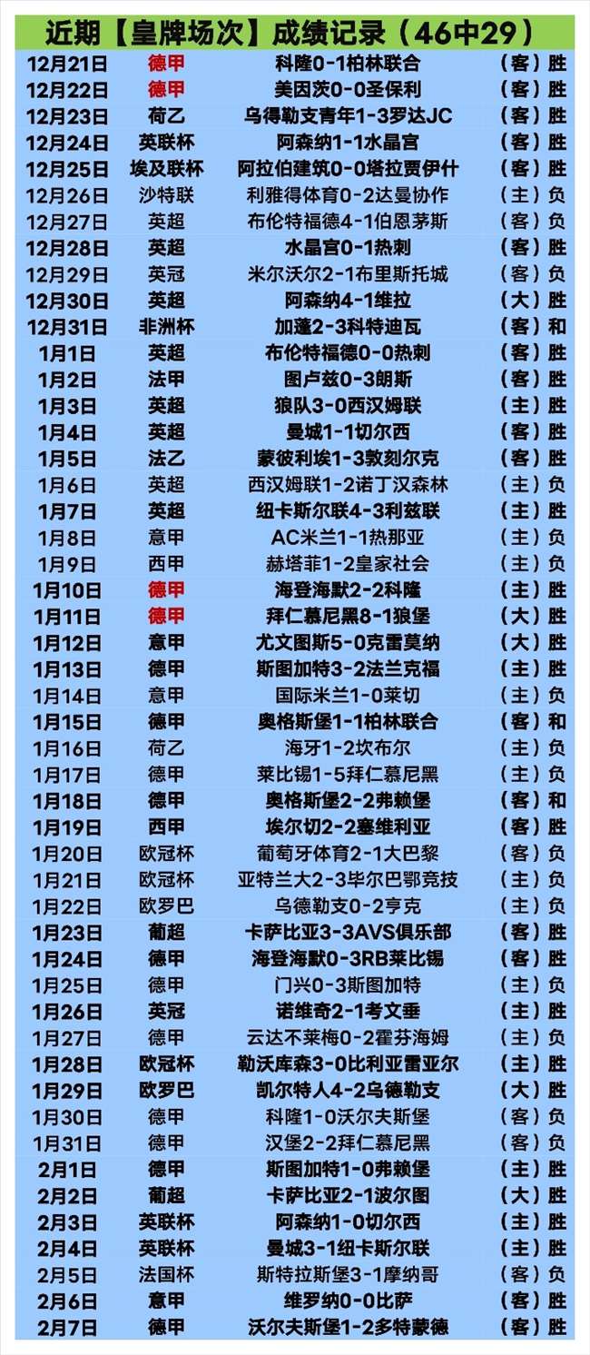 每晚仅一场【皇牌场次】近46胜29;昨晚沃尔夫斯堡1-2多特蒙德,冲五断红又两红,长线近81场拿下55场;适合长期定投的老板!今晚皇牌冲刺荷甲赛事,乘胜追击。