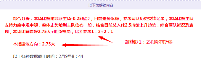 解锁内容包括:综合分析+胜负观点+比分观点
