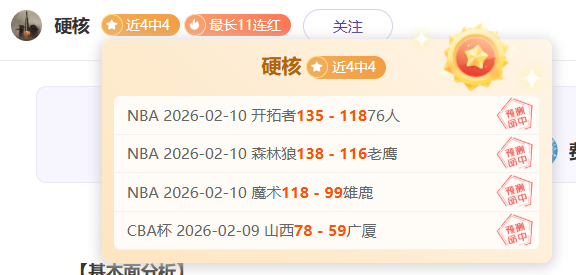 NBA昨天3场全胜,NBA连胜2天合计6胜5,今天的NBA思维清晰值得继续期待。昨天5胜4,连续两天胜利发挥,目前状态出色。