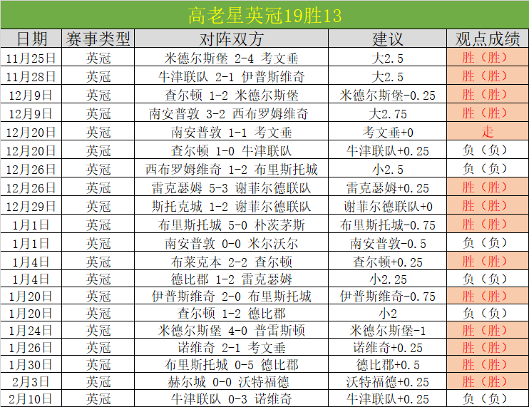 二月过去10天胜7天,累计胜+6,二月发挥出色