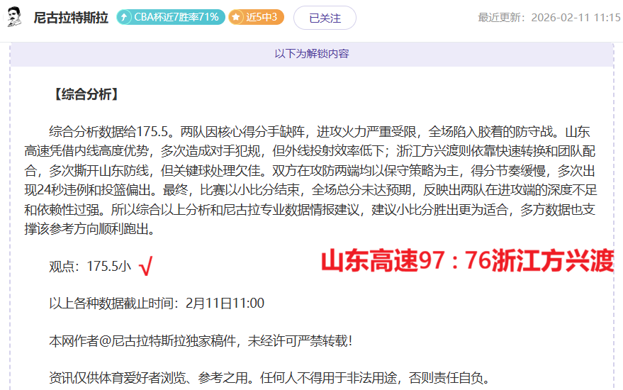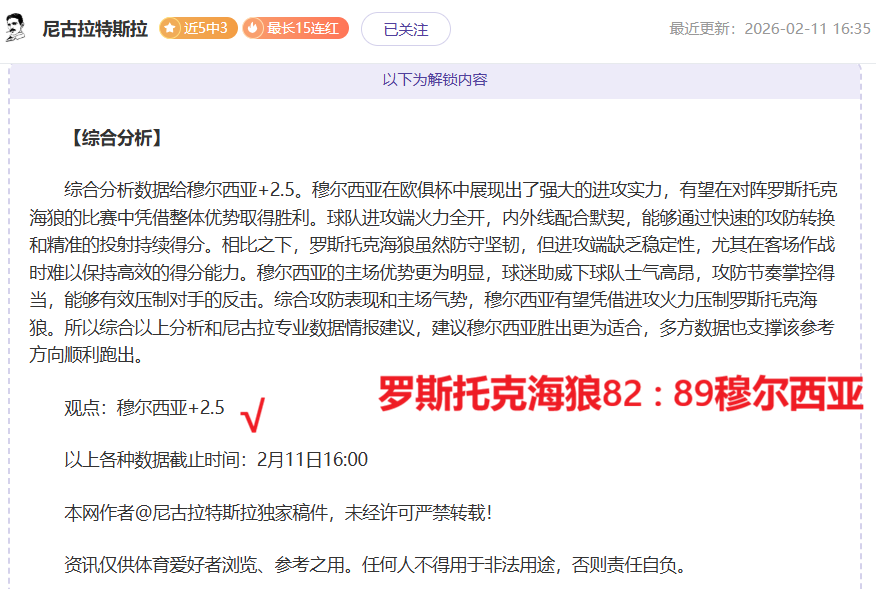解锁内容包括:综合分析+比赛建议(数据观点+附加观点)