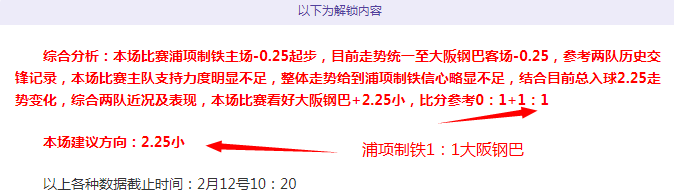 解锁内容包括:综合分析+胜负观点+比分观点