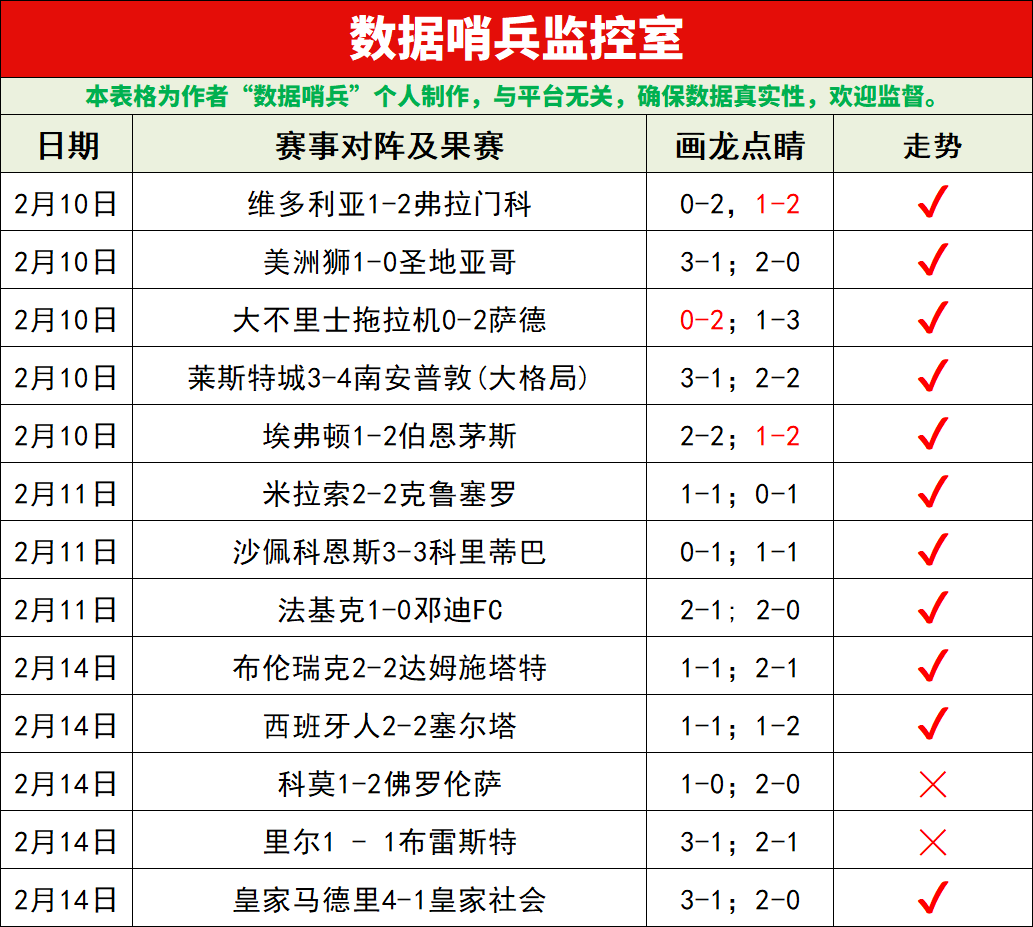 13红11;昨日,憾被终结了长连红,倒在了意甲与法甲实在无可奈何,不过皇马还是顺利跑出理想方向,成绩依旧稳定。