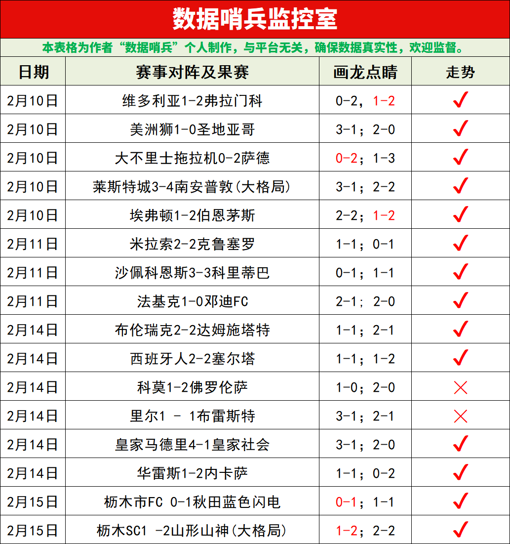 10连红再回4连红,五场“画龙点睛”配佩成功,今天早场两场日职完美匹配成功,成绩依旧稳定,数据哨兵为你在一众比赛当中精挑细选,尊重概率。