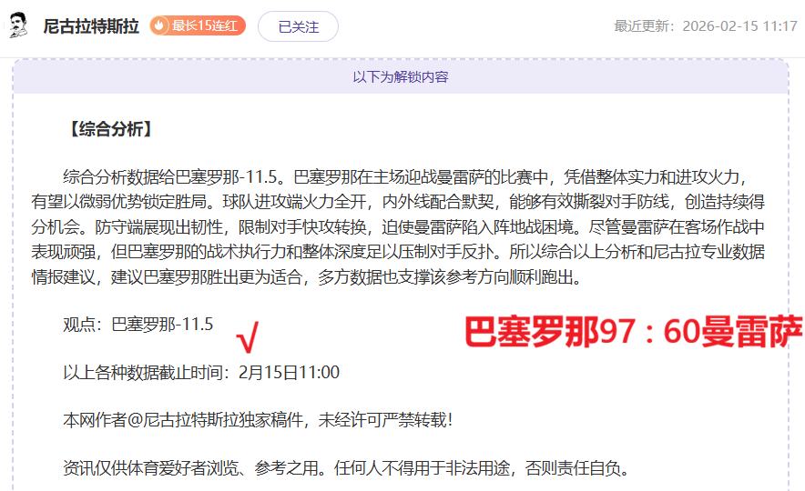 解锁内容包括:综合分析+比赛建议(数据观点+附加观点)