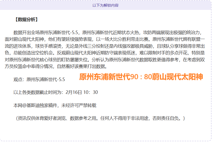【成绩回顾】昨韩篮甲获胜!精选比赛拆解本期再创连胜新高度,篮球方向连胜呈现非同凡响,拆解精准比赛继续收获连胜,篮球板块拆解数据勇往直前,资深篮球爱好者,用独立方式拆解赛事再为大家奉上。以下再为大家分享一场精彩赛事,敬请期待!