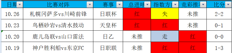 昨日推举了日联杯决赛,关注的朋友一定还记忆犹新,川崎89分钟领先后在95分钟被绝平,两队加时各进一球,最终川崎队史首个日联杯冠军!岗田武史的推举则是1红1黑,总进球数顺利拿下,而指数方向则是被“绝杀”,10月份复出以来总战绩如下,胜率为86%。